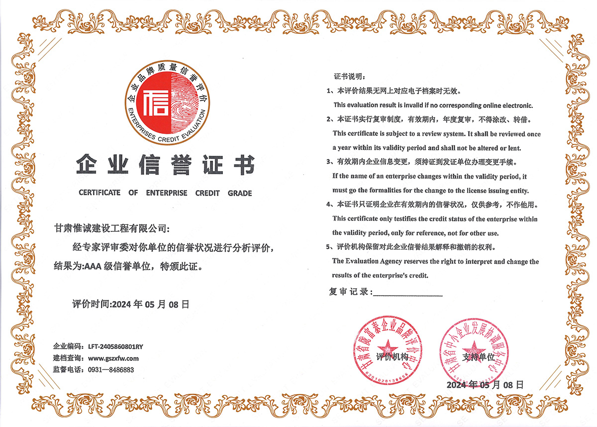 企業(yè)信譽(yù)證書