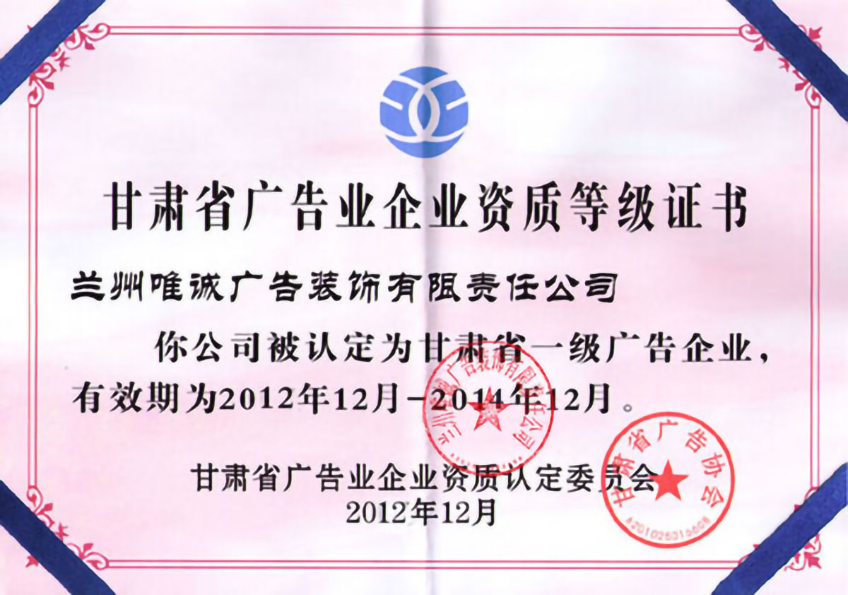 廣告等級(jí)證書(shū)